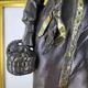 Фигура установлена на постамент из цельного гранита, украшенный изображениями знаков зодиака. Этот тщательно продуманный элемент придаёт статуэтке особый символический смысл, а также подчеркивает её эксклюзивность. Выбор гранита, материала с историей и неповторимой текстурой, добавляет статуэтке особый шарм и роскошь.